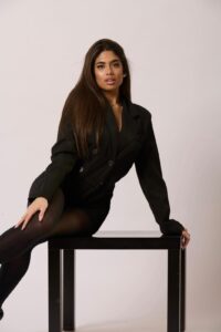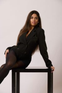 Martina D’Auria è una modella emergente con alle spalle già esperienze significative nel mondo della moda e dello spettacolo. Ha iniziato la sua carriera a soli 14 anni partecipando a programmi televisivi, e da allora ha collezionato collaborazioni con brand prestigiosi come Gucci, Versace, Dolce & Gabbana e Mc Queen. Ha calcato le passerelle della Capitale, partecipato a shooting per campagne nazionali e internazionali, e conquistato titoli come Miss Cinema e Spettacolo.